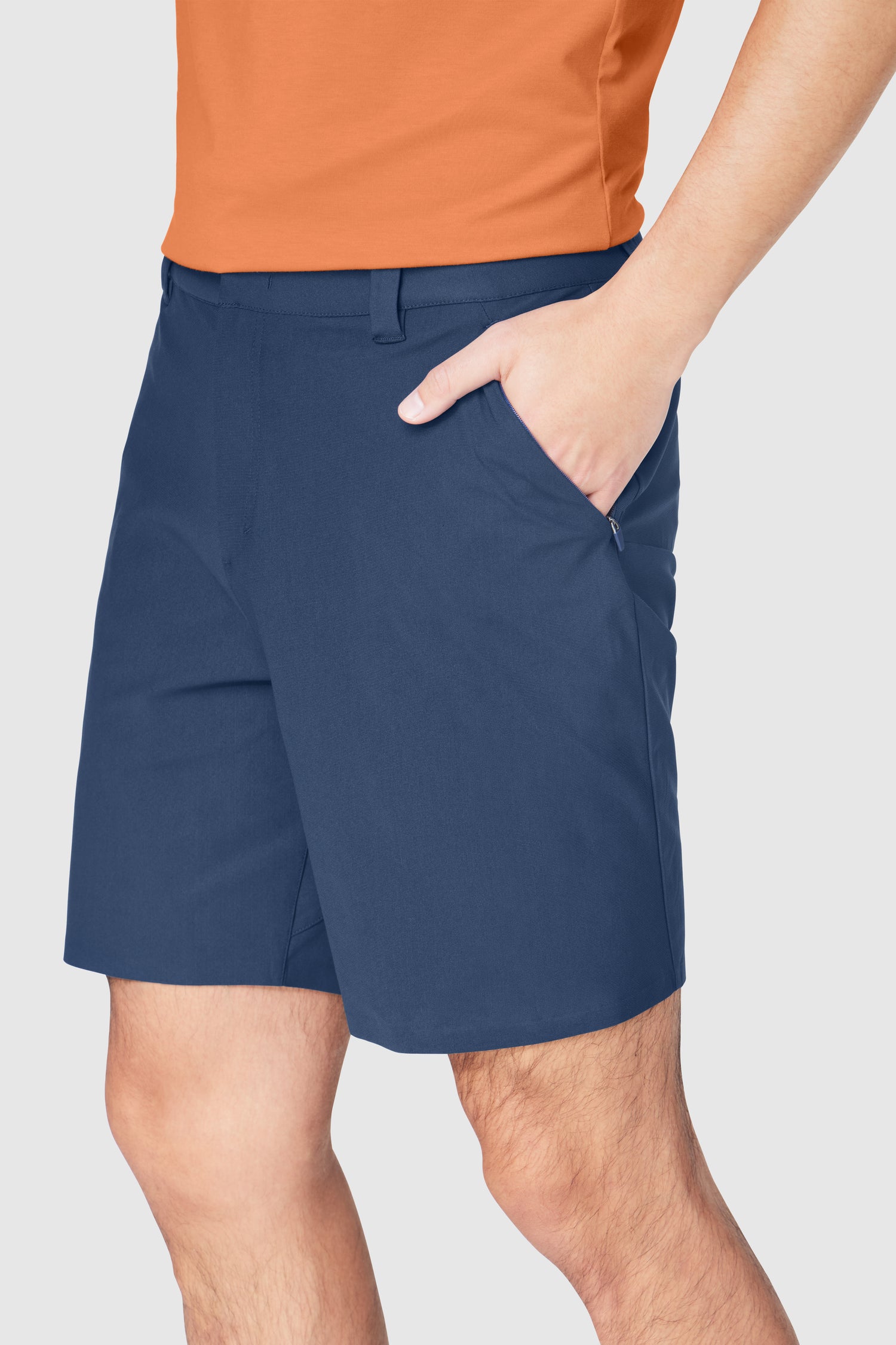 Crafted for modern comfort, this hybrid short boasts sleek, sporty style. Lightweight and stretchy warp knit fabric ensures unrestricted movement, while the quick-dry finish helps keep you feeling fresh. A classic zip-front closure and belt loops dress up the casual short, and multiple pockets provide ample storage for small essentials.